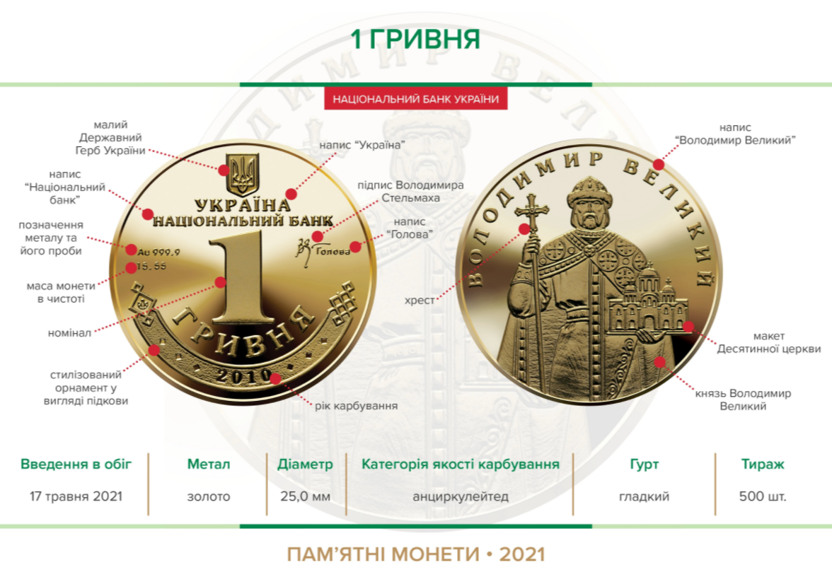 Національний банк України 17 травня 2021 року вводить в обіг золоту пам’ятну монету "1 Гривня".