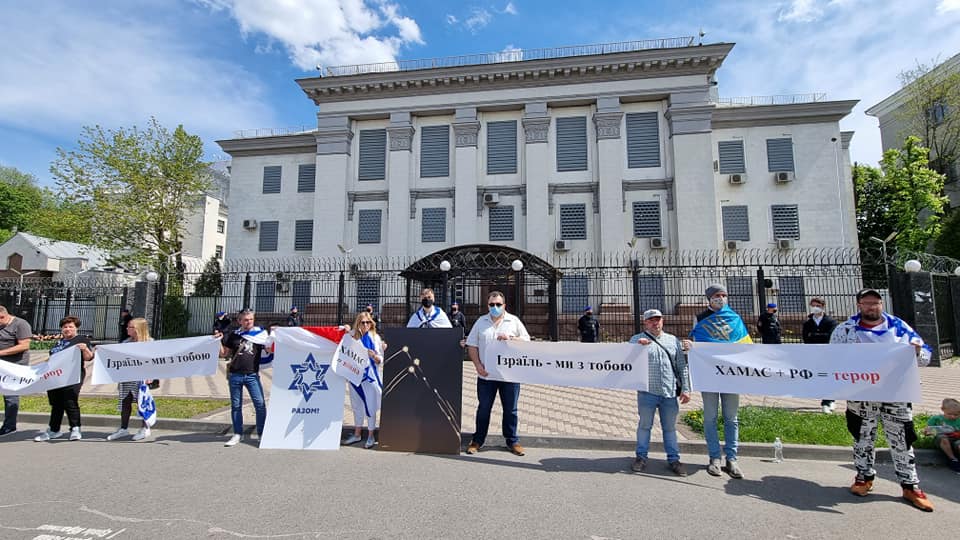 Сьогодні, 16 травня в Києві біля російського посольства пройшла акція на підтримку Ізраїлю, який протистоїть ісламістському угрупованню ХАМАС.