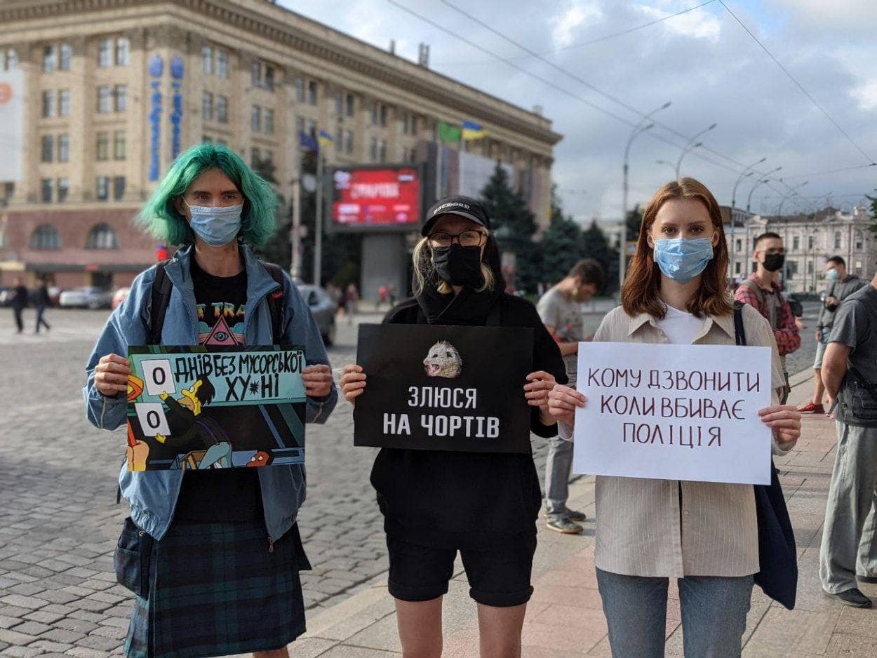 Учасники акції прийшли з плакатами "Free Sternenko", "A.C.A.B.", "Свободу політв'язням", "Куди дзвонити, коли вбиває поліція" та ін.