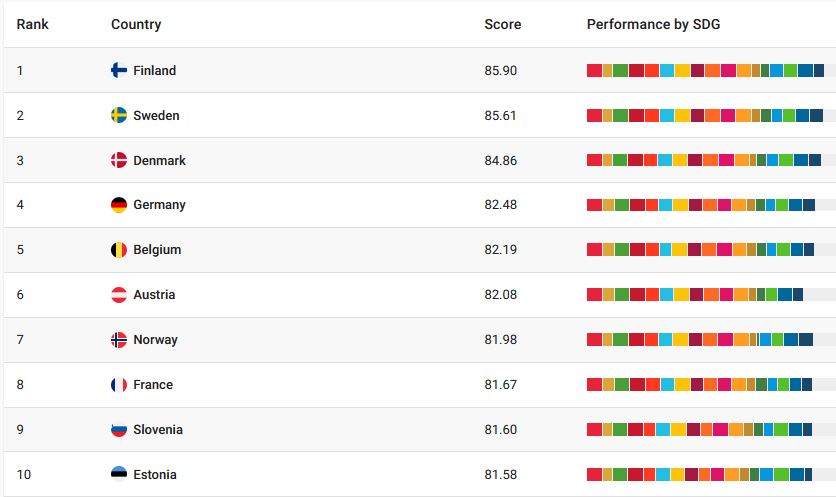 Укладачі рейтингу відзначили прогрес України. Він полягає в досягненні 10 з 17 цілей, які визначають сталий розвиток країни в економічній, соціальній та екологічній сферах.