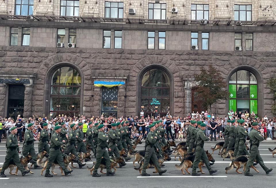 У складі пішої колони вперше братимуть участь кінологи Держприкордонслужби разом зі своїми чотириногими напарниками. Всього на параді будуть марширувати 33 прикордонника з різних підрозділів ДПСУ і 32 службові собаки, навчені пошуку наркотиків і зброї.