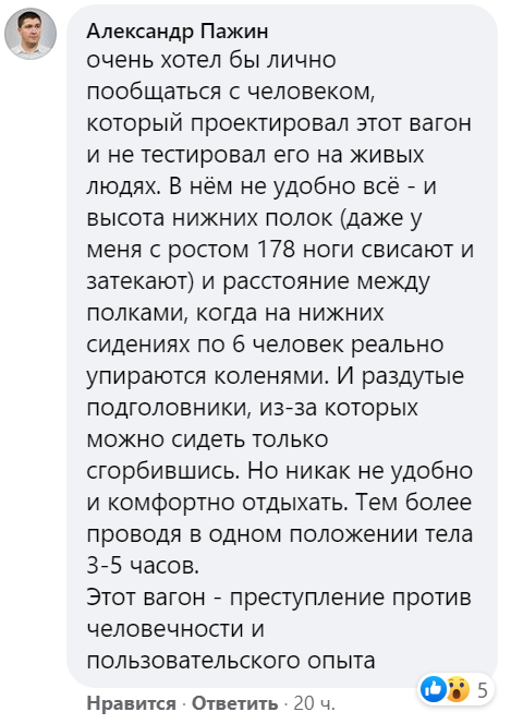 За словами Рудоманова, на виставці був представлений прототип капсульного вагона, який ще 10 раз можуть змінити. Однак користувачі Фейсбуку вже встигли розкритикувати побачене. Зокрема, питання викликала велика висота нижніх полиць, з яких звисають ноги; роздуті підголовники, через які незручно сидіти; мала відстань між полицями; низька якість шторок.