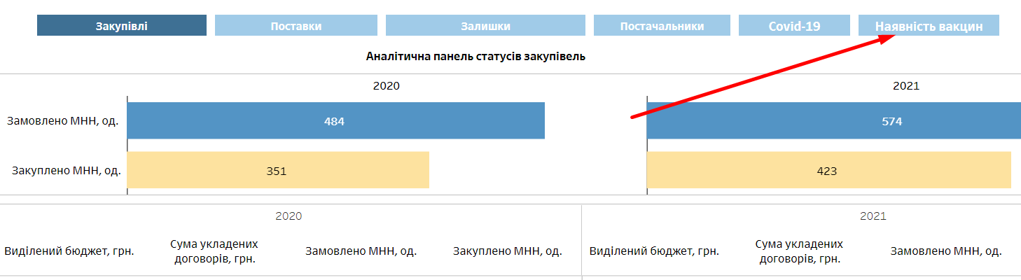 - З комп’ютера через дешборди ДП МЗУ – можна знайти інформацію про залишки вакцини проти COVID-19 у кожному пункті щеплення, що діє в Україні. Дані можна фільтрувати у розрізі областей або наявності конкретної вакцини.