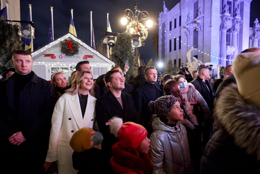 Президент України Володимир Зеленський і перша леді Олена Зеленська взяли участь у відкритті святкового містечка «Миколай приймає друзів», яке цьогоріч знову працюватиме для дорослих і дітей на вулиці Банковій у Києві.