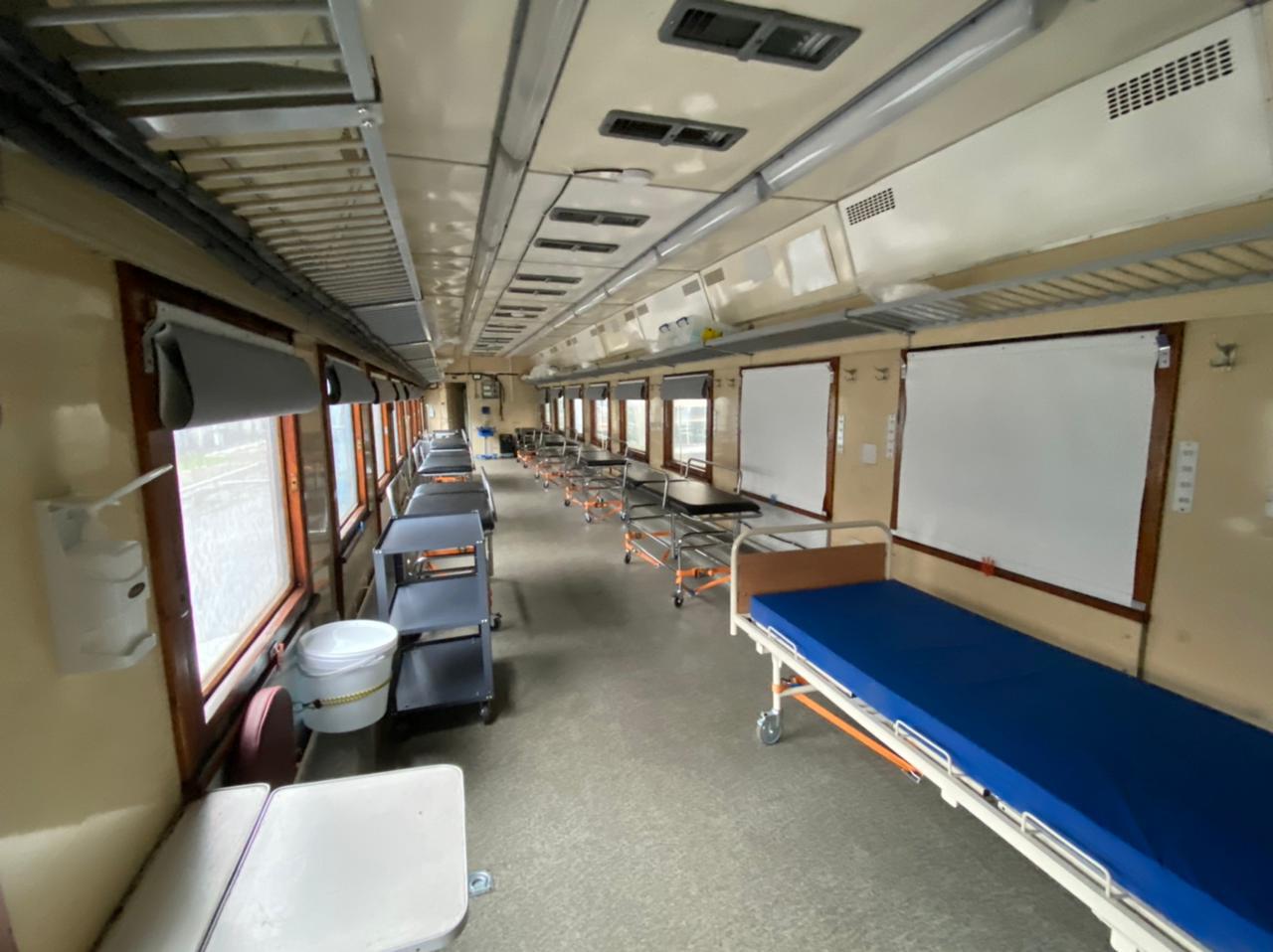Завдяки співпраці МОЗ, «Лікарі без кордонів» та Укрзалізниці у перший рейс вийшов новий потяг-мінігоспіталь. Він складається із кількох вагонів, зокрема й вагона інтенсивної терапії.