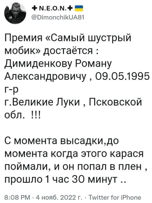 У мережі також додали, мовляв, цьому російському окупанту можна привласнити премію "найшвидший "мобік".