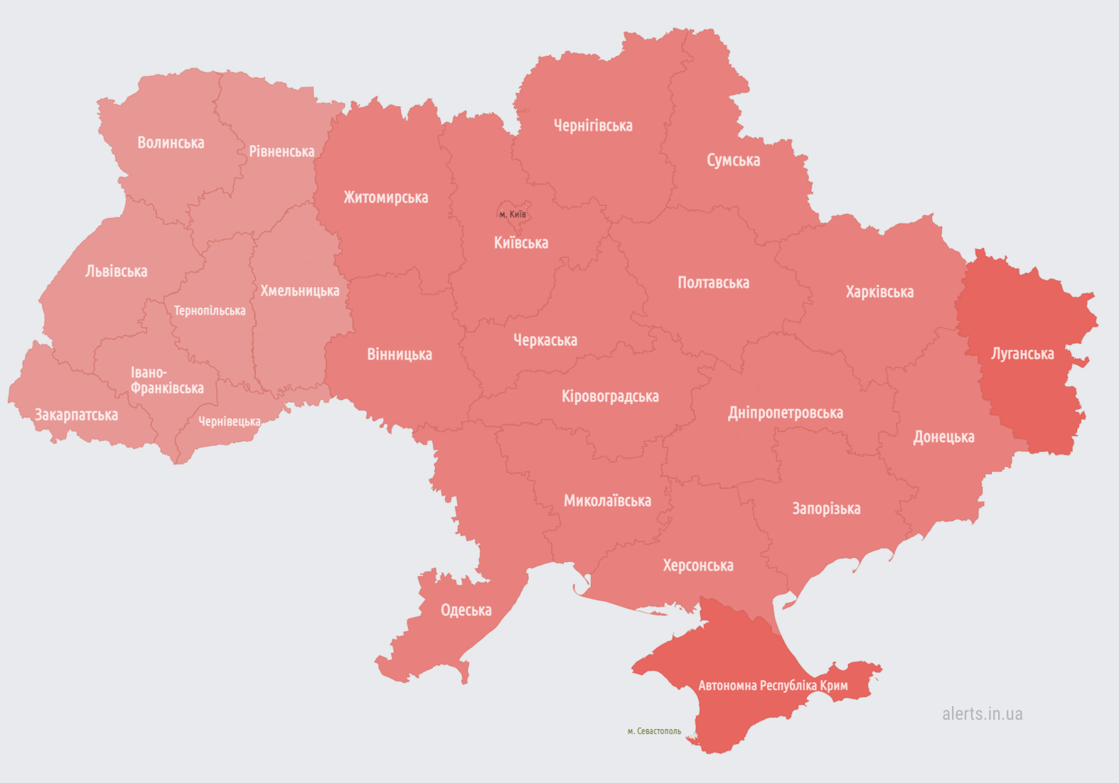 У західних областях повітряну тривогу оголосили приблизно о 8:00.