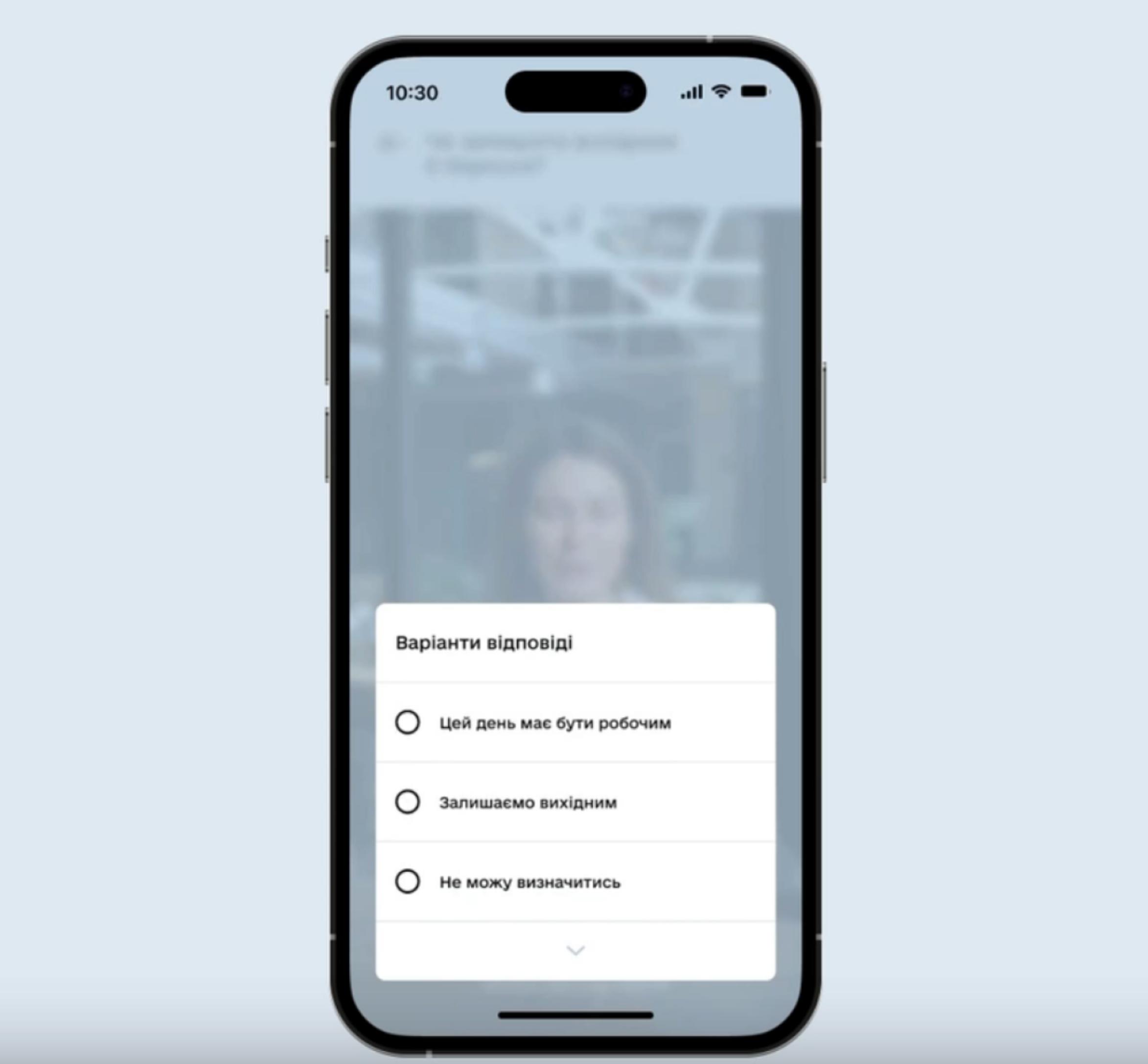 У мобільному додатку українцям пропонують відповісти на запитання – чи залишати вихідним 8 березня?
