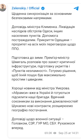 "Хороші новини від міністра Умерова. "Абрамси" вже в Україні й готуються посилити наші бригади. Дякуємо союзникам за виконання домовленостей! Шукаємо нові контракти, розширюємо географію постачання", - йдеться у його повідомленні.