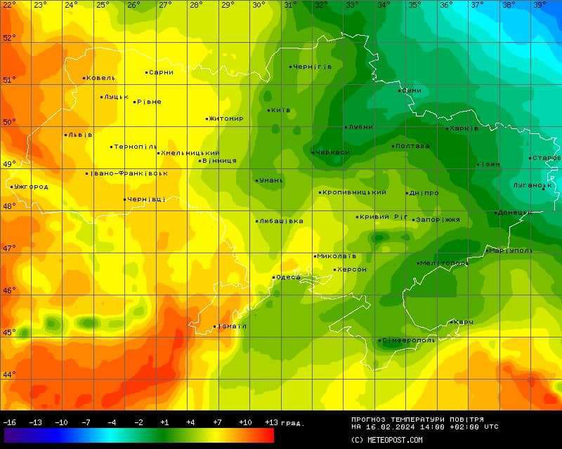 16-го лютого найтеплішою очікується погода в західних областях України, максимально +7+12 градусів.