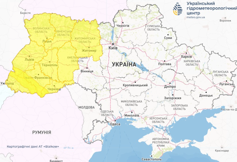 Про це свідчить прогноз погоди Укргідрометцентру у Facebook, передає Час Пік.