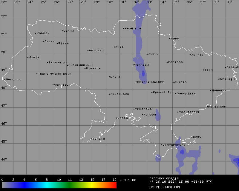 Синоптик Наталія Діденко прогнозує легкий дощ, що тягнеться на південний схід України - наче хтось розлив чорнило на прогностичну карту, передає Час Пік.