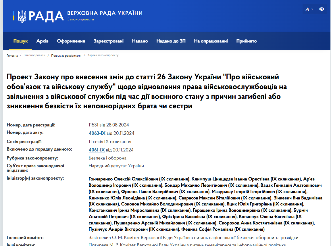 Цей крок став важливим моментом для багатьох військовослужбовців, які втратили рідних на фронті. Також закон включає позитивні зміни для громадян, чиї близькі загинули чи зникли безвісти під час бойових дій: вони отримають відстрочку від призову.