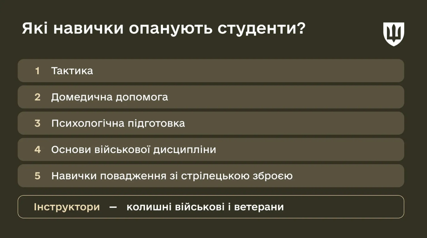 У Міноборони зазначають, що до викладання будуть залучені досвідчені військовослужбовці у відставці, ветерани війни та військової служби.