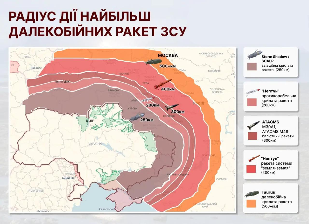 Зняття обмежень означає, що Україна може використовувати такі ракети, як Storm Shadow (до 250 км), ATACMS (до 300 км) і навіть модернізовані версії "Нептуна" (до 400 км) по об'єктах, що знаходяться далеко за лінією фронту.