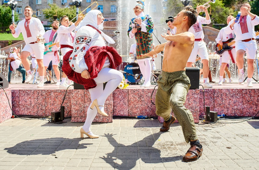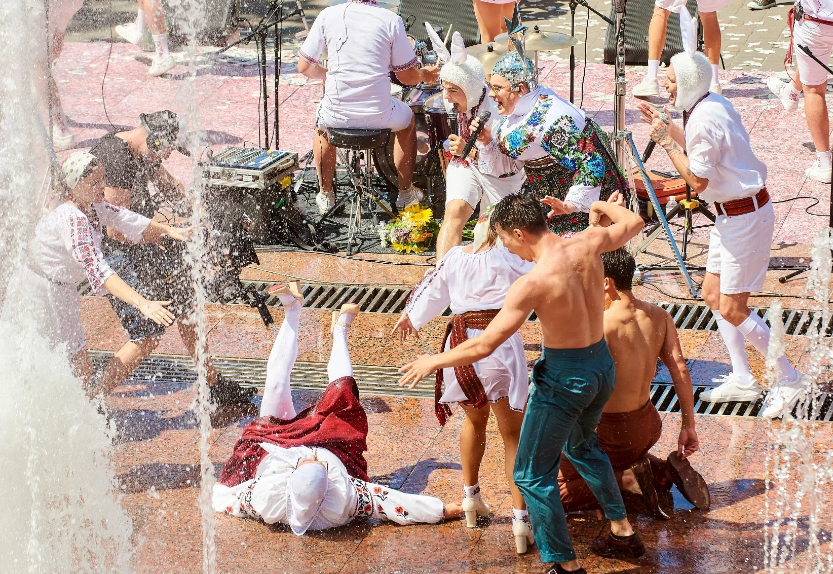 Вєрка Сердючка зі своїм творчим колективом Verka Serduchka Band і, звичайно ж, "мамою" влаштували драйвовий виступ у фонтані на Хрещатику.