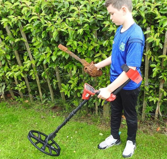 Житель міста Деррілаун Фіоннтан Хьюз отримав на своє 10-річчя цікавий подарунок - металошукач. У перший же день застосування подарунка в дії він знайшов біля свого будинку закопаний в землю старовинний меч, передає Час Пік з посиланням на зарубіжні ЗМІ.