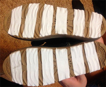 Перш ніж приступити до справи, необхідно добре вимити підошву взуття, висушити, а потім знежирити. Для цього годиться спирт, бензин, ацетон, рідина для зняття лаку, горілка або різні розчинники. Після цього можна займатися "апгрейдом" підошви.