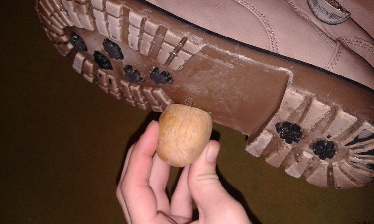 Сира картопля. Існує думка, що якщо натерти підошву скибочкою сирої картоплі, то вона стане менш слизькою. Ефективність і тривалість цього способу приблизно така ж, як у лаку для волосся.