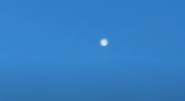На відео можна чітко розглянути яскраву точку на тлі блакитного неба, яка то наближалася, то віддалялася.
