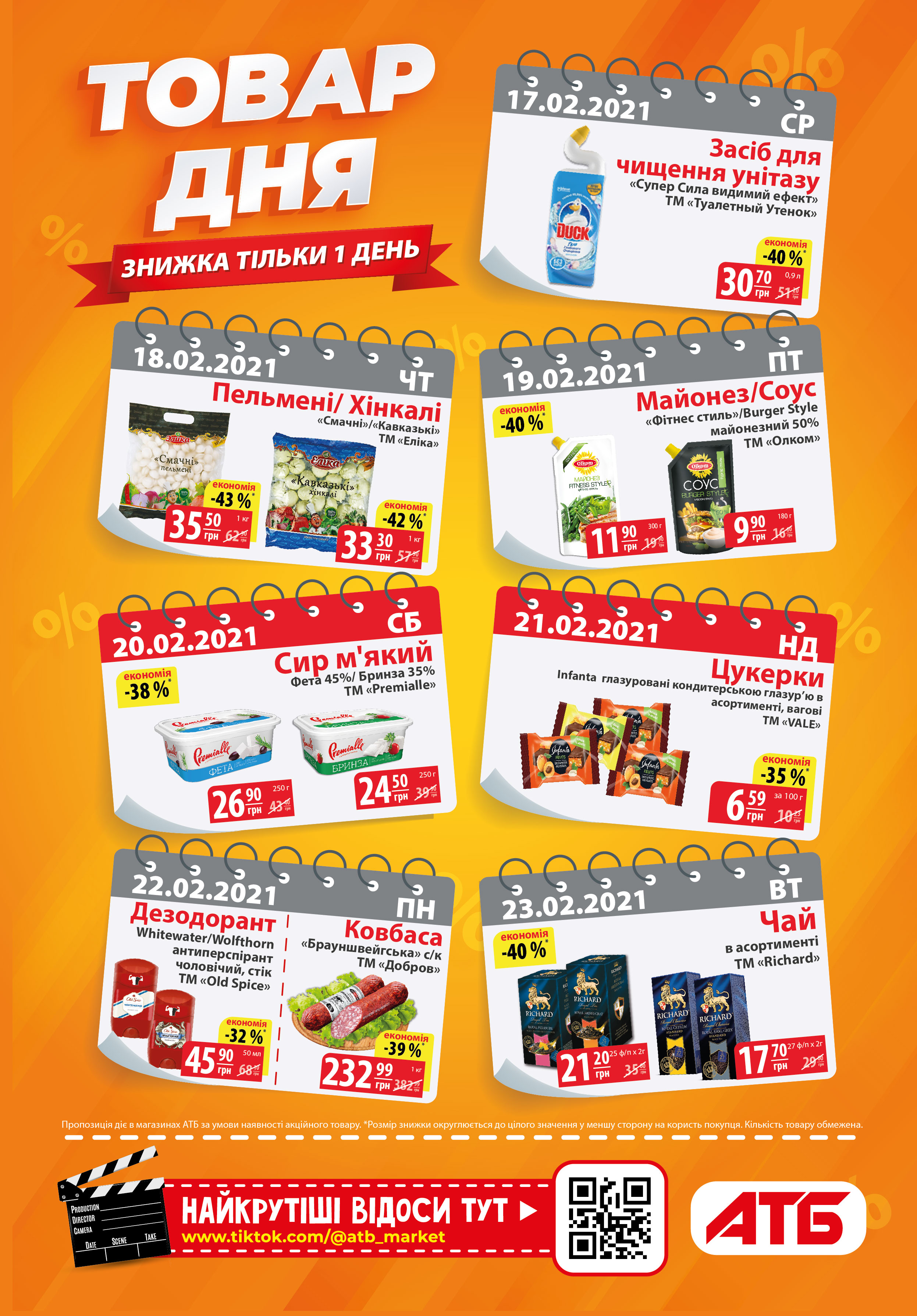 Акція "Товар дня" триватиме з 17 по 23 лютого, передає Час Пік з посиланням на інформацію від прес-служби корпорації "АТБ".