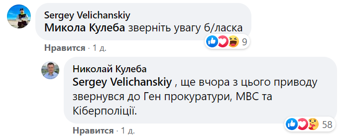 На скандал відреагував Уповноважений президента України з прав дитини Микола Кулеба. У коментарях під одним з постів він повідомив, що вже звернувся з цього приводу до Генпрокуратури, МВС та Кіберполіції.