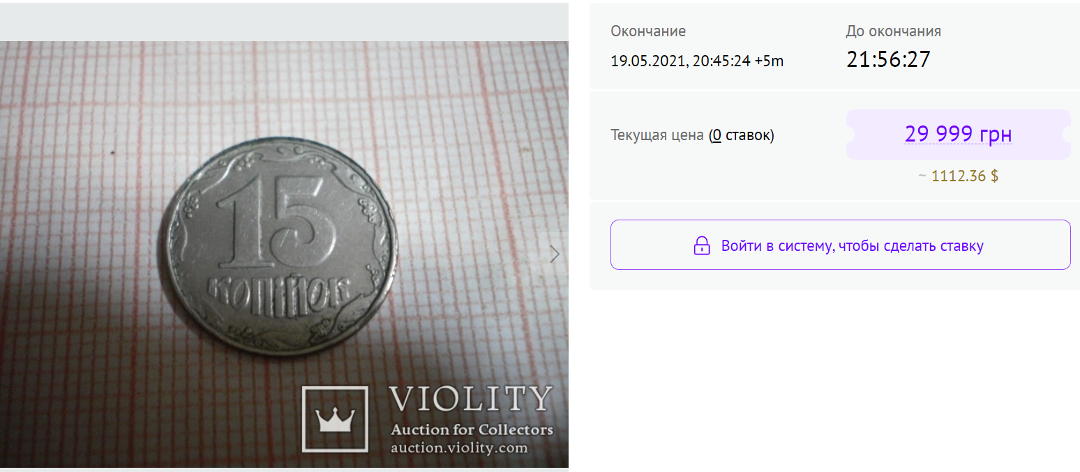 Зараз українські 15 копійок коштують шалених грошей. На інтернет-аукціонах такі лоти пропонуються за ціною 14 тисяч, 20 тисяч, а то й 30 тисяч гривень.