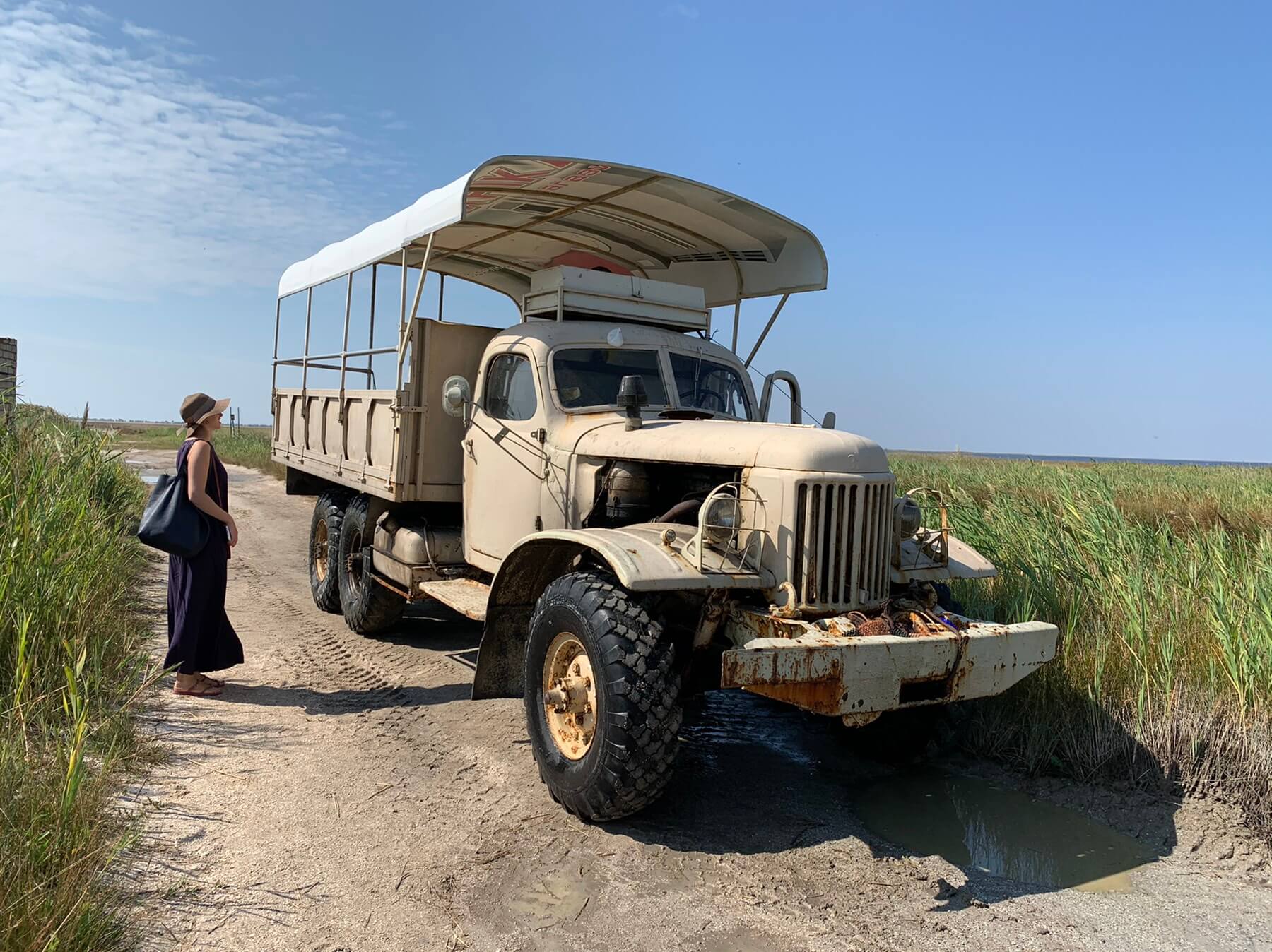 А ще можна вирушити на "сафарі" по Джарилгачу на дивовижному транспортному засобі - гібриді автобуса і вантажівки.