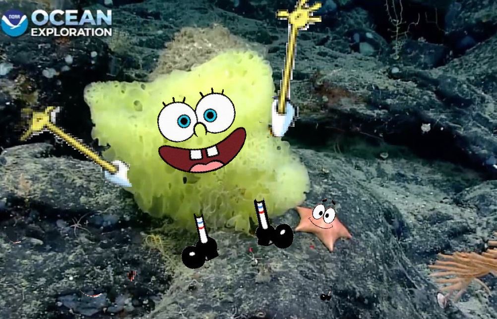 *laugh* I normally avoid these refs..but WOW. REAL LIFE Sponge bob and Patrick! #Okeanos Retreiver seamount 1885 m pic.twitter.com/fffKNKMFjP
