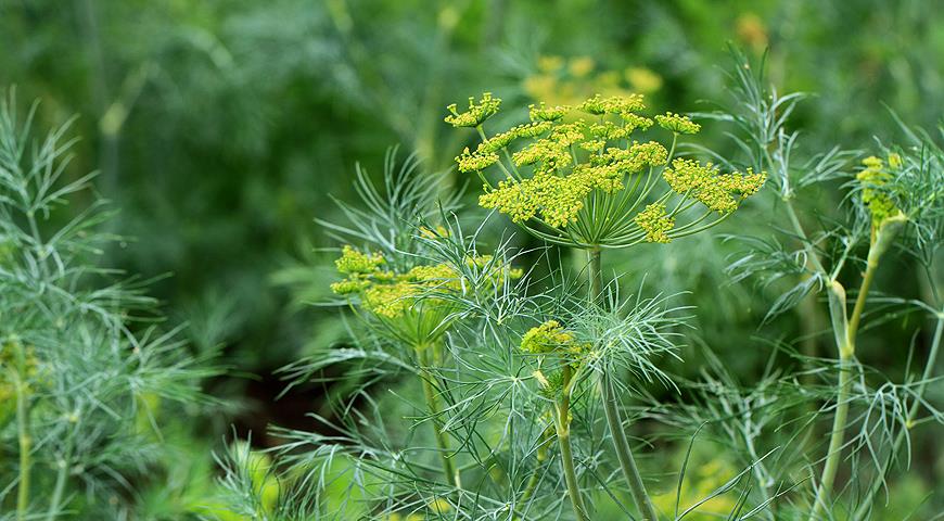 Відомо, що кріп багатий вітамінами А, В та С, а також містить багато клітковини. Він здатний приводити в норму артеріальний тиск і є потужним джерелом марганцю. Кріп може виступати в якості антиоксиданту і протизапального засобу, стабілізувати рівень цукру в крові.