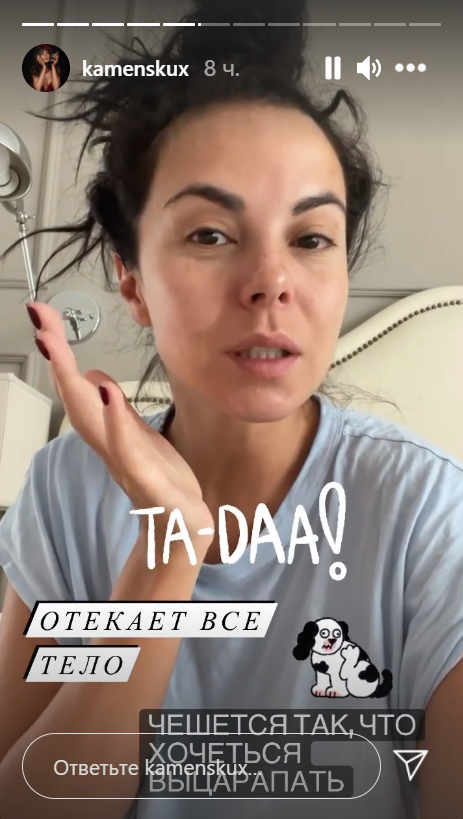 Каменських показала, як виглядає її обличчя без фільтра. За її словами, її мучить набряклість, а найбільше страждають очі.