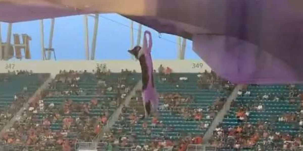 Під час футбольного матчу в Майамі вболівальники врятували кота, який зірвався з верхнього ярусу трибун.
