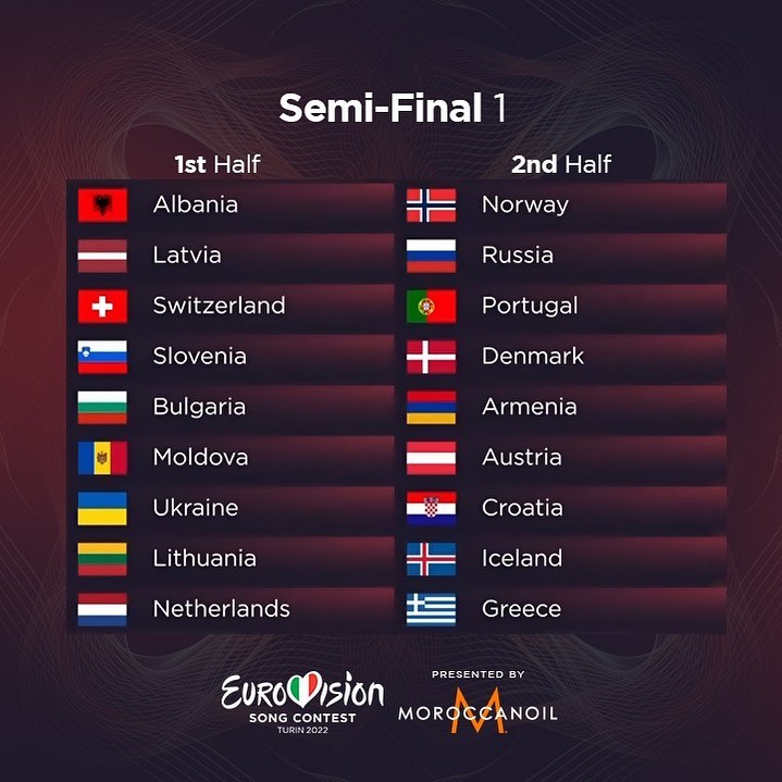За результатами жеребкування Україна виступатиме в першій половині першого півфіналу 10 травня.