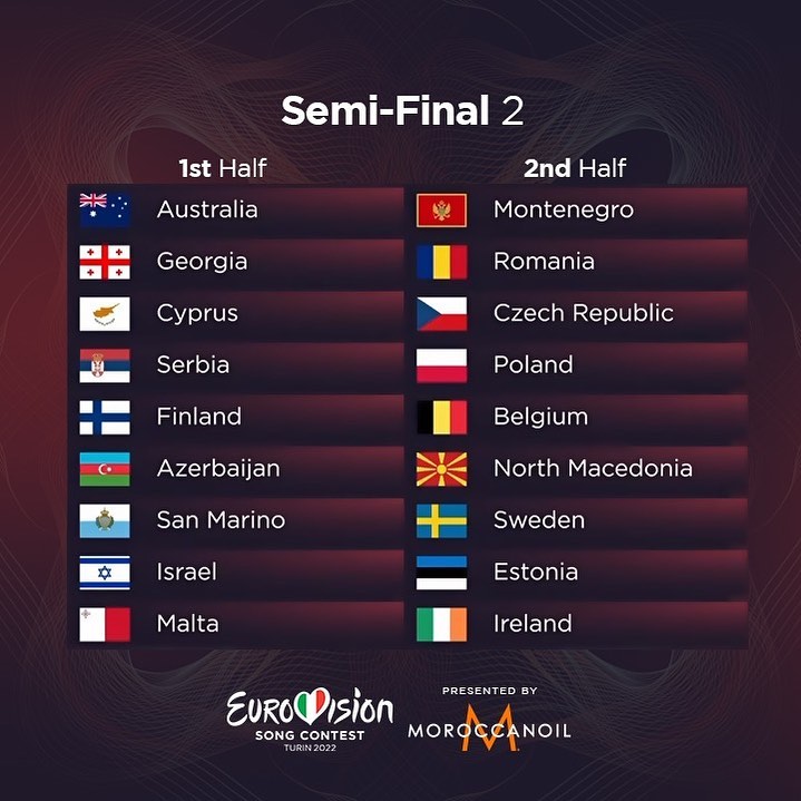 Учасники другого півфіналу: Австралія, Грузія, Кіпр, Сербія, Фінляндія, Азербайджан, Сан Маріно, Ізраїль, Мальта, Чорногорія, Румунія, Чехія, Польща, Бельгія, Північна Македонія, Швеція, Естонія та Ірландія.
