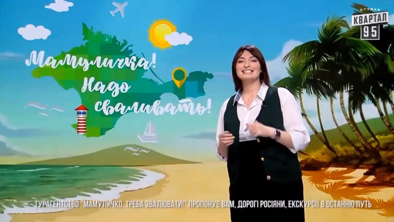 У новому ролику актриса Анастасія Оруджева постала в образі співробітниці турагентства, що пропонує росіянам екскурсії в останню путь до Криму.