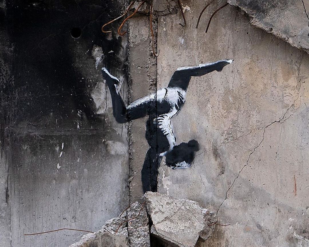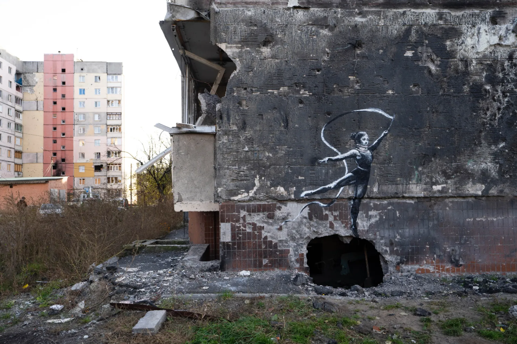 Зокрема, в офіційному аккаунті в Instagram Бенксі показав малюнок гімнастки, намальований на зруйнованому будинку у Бородянці Київської області.