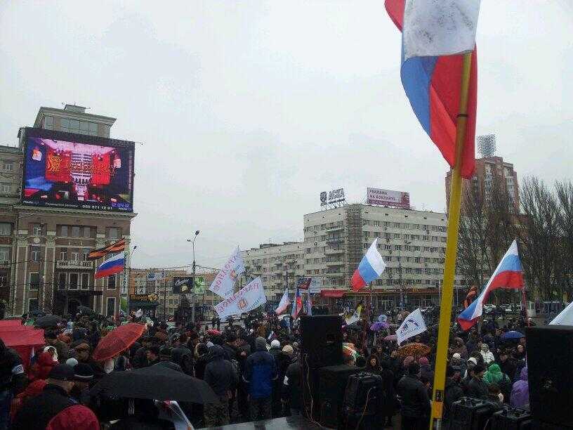В центре Донецка на пророссийский митинг собрались около трех тысяч человек.