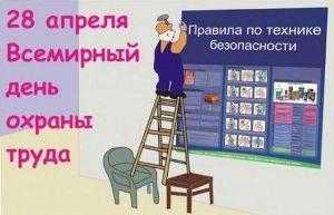 Ежегодно 28 апреля свыше 100 стран мира отмечают Всемирный День охраны труда для привлечения внимания мирового сообщества к вопросам охраны труда, продвижению культуры охраны труда, которая будет способствовать сокращению случаев смертельного травматизма на рабочих местах. По рекомендации МОТ в текущем году он пройдет под девизом «Безопасность труда и здоровья во время использования химических веществ на производстве».