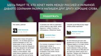 На главной странице сайта написано: "Здесь пишут те, кто хочет мира между Россией и Украиной. Давайте сохраним разум и напишем друг другу хорошие слова."