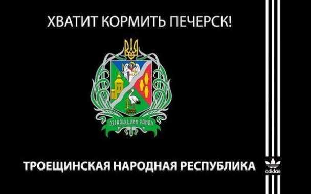 Как стало известно ранее, уже и Сибирь собирается на марш за федерализацию под лозунгом "Хватит кормить Москву!". И как бы не старался Роскомнадзор подавить сибирское свободолюбие — все тщетно. А интернет-пользователи тем временем традиционно доводят ситуацию до абсурда. Так в уанете появились Троещинская и Оболонская "народные республики", лозунги вроде "Хватит кормить Печерск!" и так далее. При этом у каждой республики есть свои флаги с отличительными знаками, несущие глубокий символизм.
