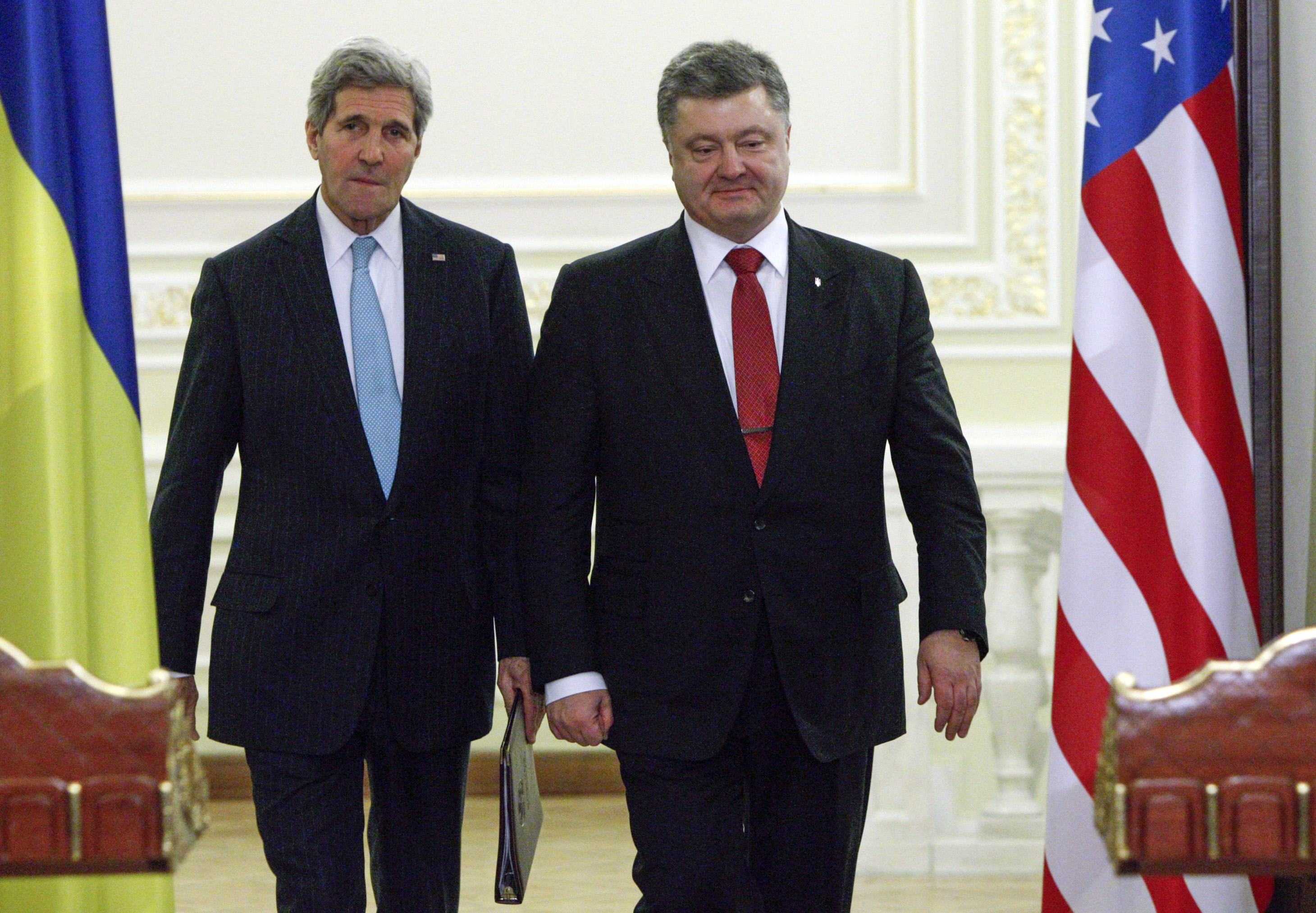 Президент Украины Петр Порошенко во время встречи поблагодарил США за оказание экономической поддержки в проведении ключевых реформ и продолжения сотрудничества между двумя странами. "Я благодарю США за решение о предоставлении всеобъемлющей экономической поддержки Украине. Госсекретарь Керри прилетел не с пустыми руками, а объявил о поддержке", - сказал президент.