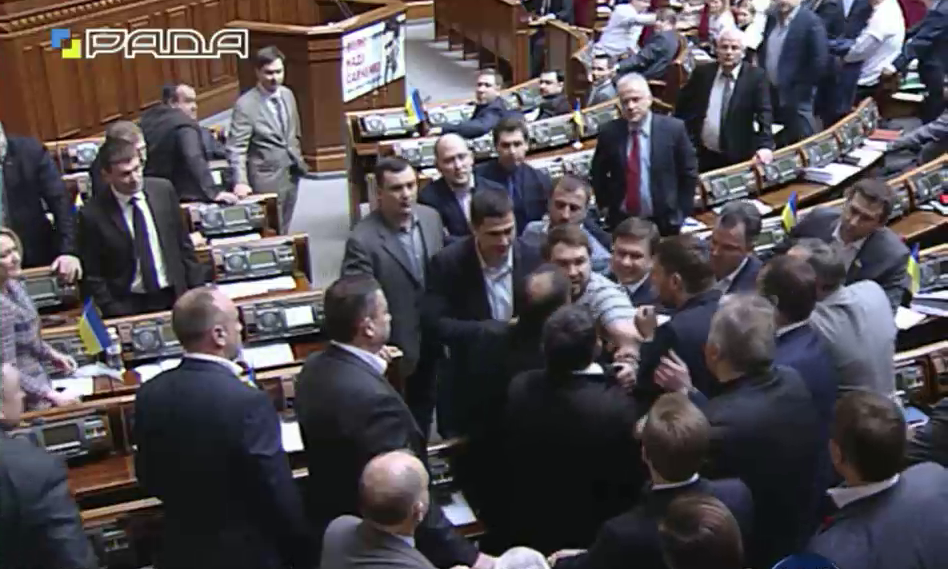 В Верховной Раде в ходе очередного заседания парламента возникла потасовка между народными депутатами. Трансляцию заседания парламента ведет телеканал "112 Украина ".