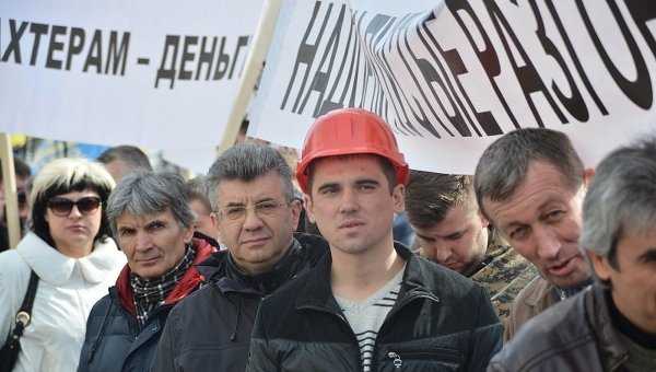 Участники митинга также держат лозунги с требованием вернуть социальные гарантии шахтерам, а также с требованием установить справедливые тарифы на уголь и электроэнергию.