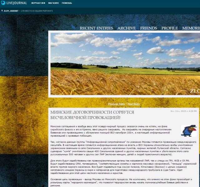 "Так, согласно данным группы "Информационное сопротивление" по указанию Москвы готовится провокация международного масштаба. В настоящее время готовится информационная атака на власть и ВСУ Украины относительно якобы уничтожения украинскими военными в селе Сокольники и других населенных пунктов, мирных жителей Луганской области. Согласно сценарию "хунта" уничтожила свыше 400 Сокольников зданий и других населенных пунктов и убила возле этого села русскоязычных 500 человек и других сел "ЛНР" (включая женщин, детей и людей преклонного возраста).