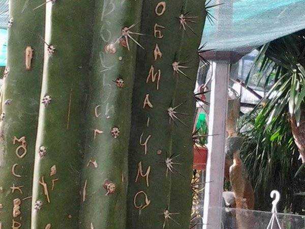 Туристы, которые посетили ботанический сад оставили надпись: «Обама - чмо» на кактусах, которые здесь растут уже сто лет. На другом они вырезали надпись: «Москва» и ругательные слова.