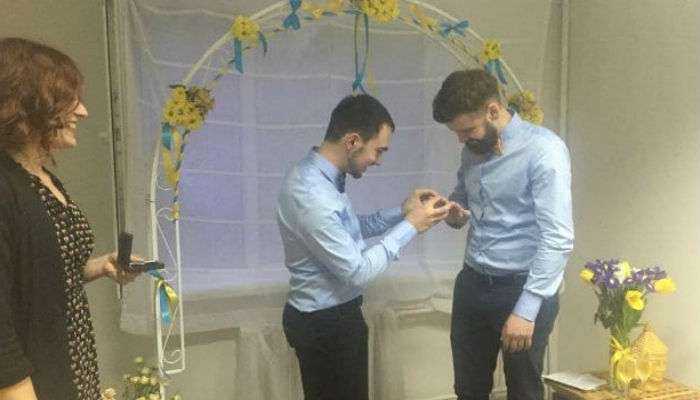 В столице Украины на днях отгуляли первую гей-свадьбу. Никаких документов виновники события не получили, а сама церемония была символической. Парой оказались Тимур Левчук и Зорян Кись.
