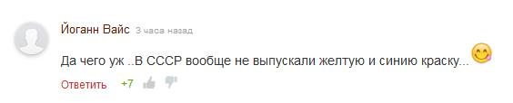 Пользователи соцсетей постят советские открытки, марки, плакаты по технике безопасности, вспоминают герб СССР, шевроны ВДВ СССР, эмблему хоккейного клуба "Химик" (Воскресенск), на которых преобладают именно желтый и голубой цвет, а также желто-синие машины советской милиции.