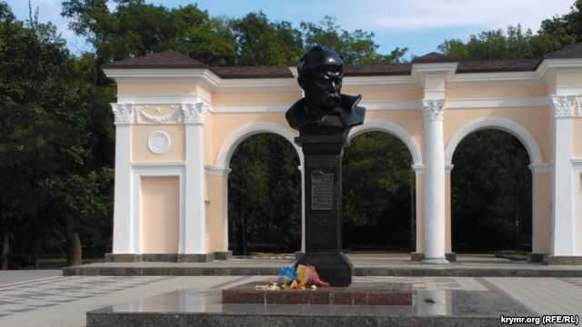 Крымчане возлагают цветы к памятнику Тарасу Шевченко в Симферополе.
