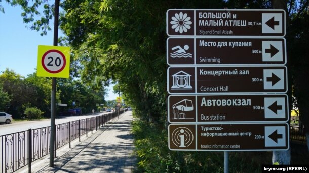 Хотя сразу возникала вполне справедливая мысль: зачем дублировать название объектов на английском, если иностранных туристов днем с огнем, как говорится, здесь не найдешь? И не предвидится их появление при всем желании черноморцев, к которым до аннексии ездили преимущественно поляки и немцы, как минимум в обозримом будущем. Причем не только в Черноморском.