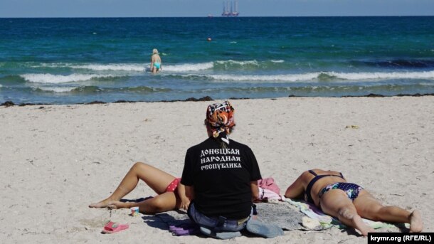 Однако немногие отдавали предпочтение плаванию. Подавляющее большинство, как эта обособленная компания, то ли прибывшая из «ДНР», то ли только их сторонники на дальнем фоне газодобывающей платформы «Черноморнефтегаза», просто задумчиво коротали время под южным небом.